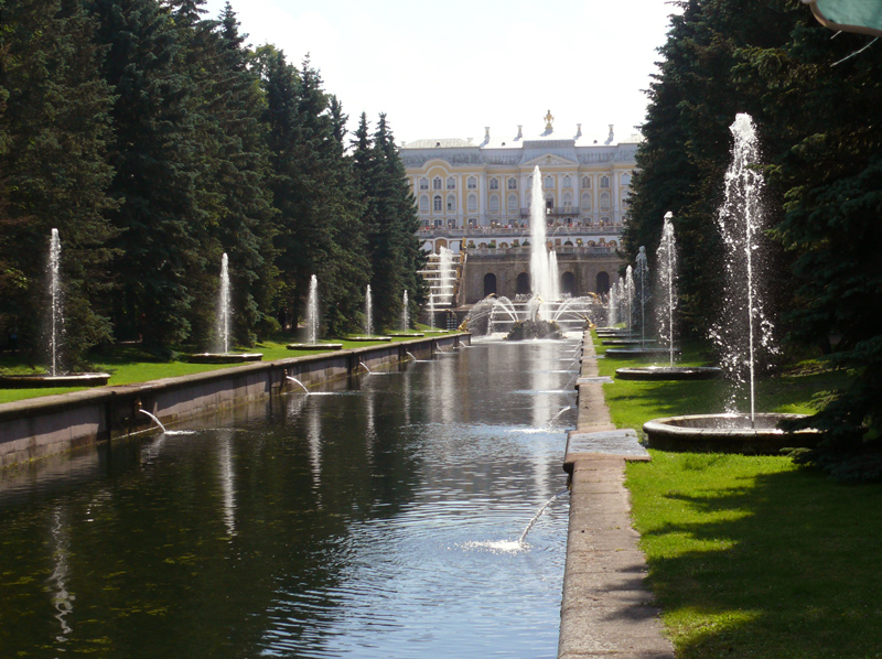 «Аллея фонтанов» начинается от ковша Большого каскада и продолжается по обоим берегам Морского канала.